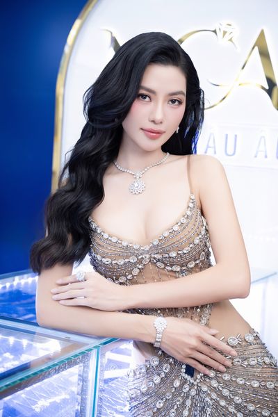 Á hậu Hoàng Nhung khoe nhan sắc ngày càng quyến rũ và nổi bật với chiều cao ấn tượng. Cô đặc biệt yêu thích những thiết kế tinh xảo của thương hiệu Ngọc Châu Âu bởi vẻ lộng lẫy và sang trọng.