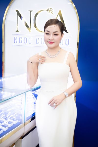 Trong chiếc váy trắng thanh lịch, CEO hoa hậu Hoàng Thanh Nga phối cùng các món trang sức duyên dáng làm điểm nhấn