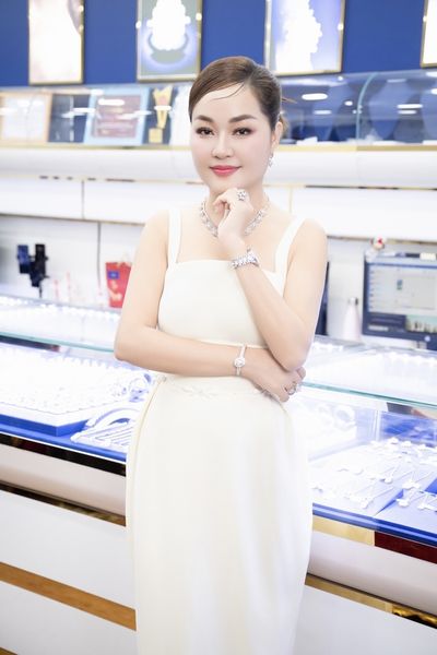 Á hậu Hoàng Nhung có mặt tại showroom trang sức của Hoa hậu Hoàng Thanh Nga để tận hưởng vẻ đẹp của những tuyệt tác trang sức kim cương, đá quý mới nhất của thương hiệu Ngọc Châu Âu